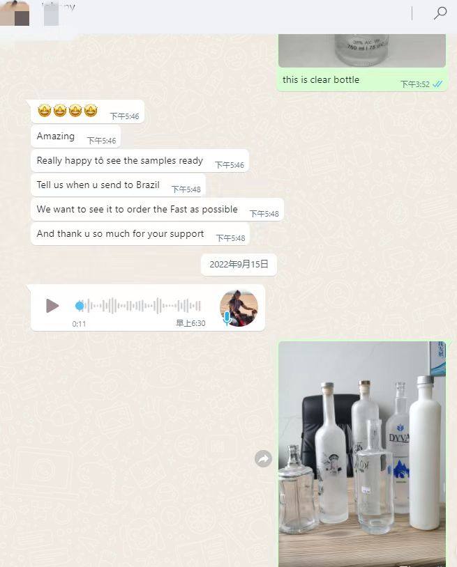 Nuestra empresa cuenta con una sólida fuerza técnica, equipos de procesamiento avanzados, un sistema de prueba completo y una rica experiencia en producción, con una producción diaria de más de 600,000 botellas de vidrio blanco cristalino/super sílex. Podemos diseñar y producir según los dibujos proporcionados por los clientes. Los pedidos de ODM y OEM son bienvenidos. Nuestro producto principal incluye material blanco cristalino/botellas de licor súper flint, botellas de licor blanco alto, botellas de licor de leche, botellas de vino galvanizadas, botellas de vino glaseado, botellas de vino importadas, botellas de perfume, botellas de bebidas, diseño y producción de tapas de botellas.